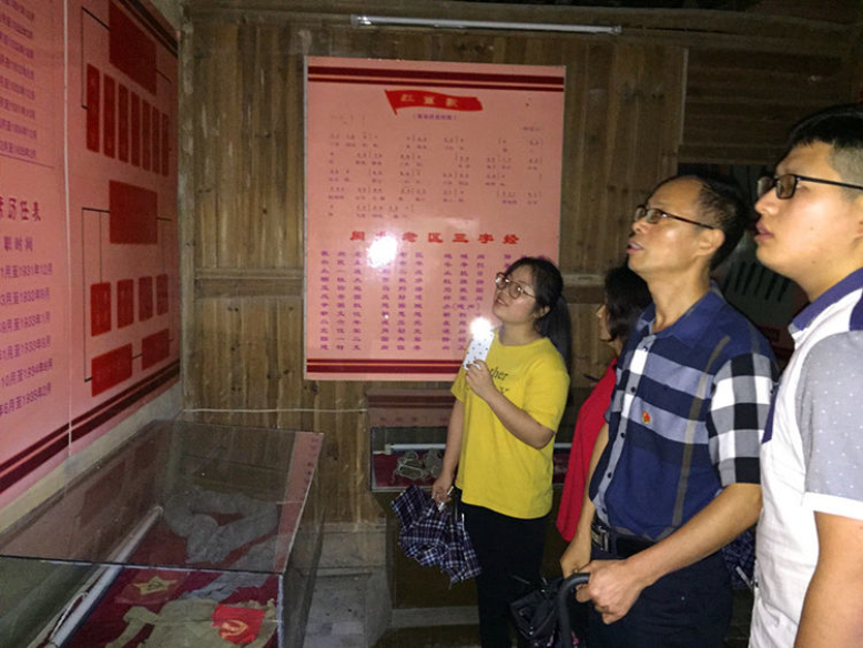 接着,全体审计人员来到铜钹山苏维埃政府旧址,虽然当地工作人员解释陈列馆停电无法参观,但大家纷纷打亮了手机灯光,认真聆听现场讲解,不时驻足观看陈列展品,详细了解铜钹山苏维埃革命斗争史,追忆艰苦卓绝的峥嵘岁月,深切缅怀革命先烈们的丰功伟绩。
