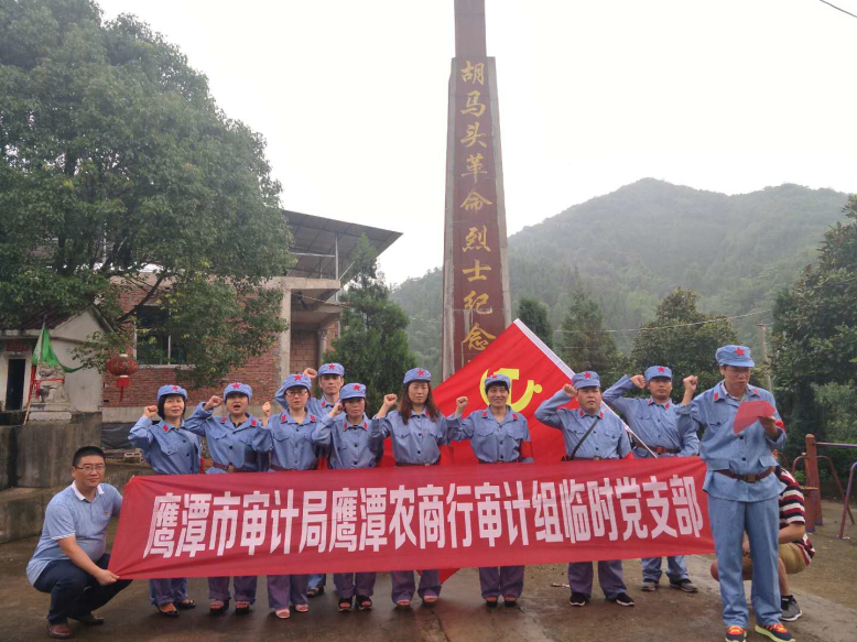 在村庄中心,高高耸立着一座纪念塔,塔身上写着“胡马头革命烈士纪念塔”十个大字,金黄色的大字嵌在紫红的塔身上,显得格外庄重醒目,塔顶上安装了一颗大大的五角星,闪闪发亮。全体审计人员在纪念塔前,冒着雨水,列成一排,举起右手,在临时党支部书记王惠斌的带领下重温了入党誓词。