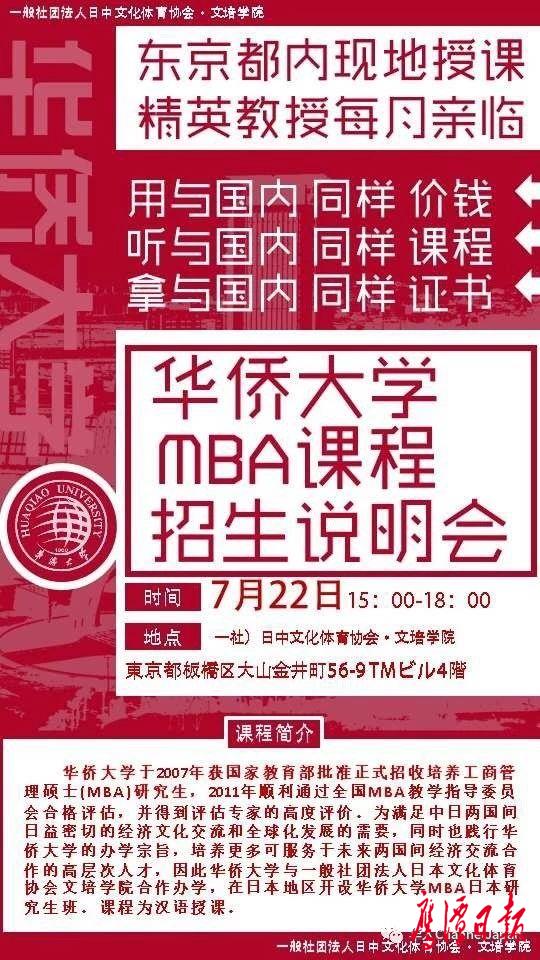 华侨大学MBA日本研究生班2018招生中最后一次不需要提出考生父母相关证明最后一次可以按照原来的政策考试与入学